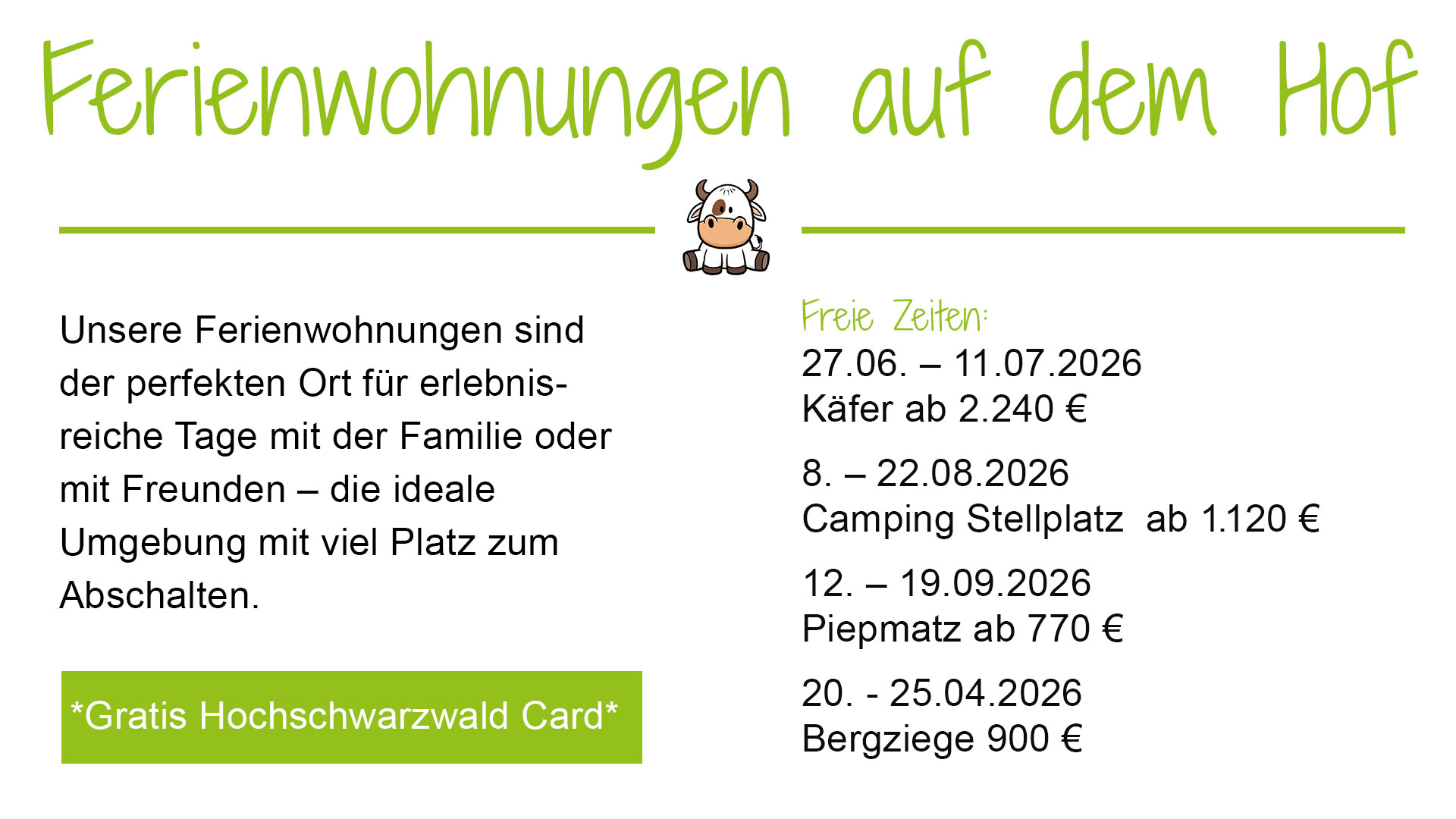 Erleben Sie einen unvergesslichen Urlaub auf unserem idyllischen Bauernhof im Herzen des Schwarzwalds! Unser Hof bietet Ihnen sechs gemütliche Ferienwohnungen und ein charmantes Chalet, perfekt für Familien, Paare oder Einzelreisende, die das Landleben in vollen Zügen genießen möchten.